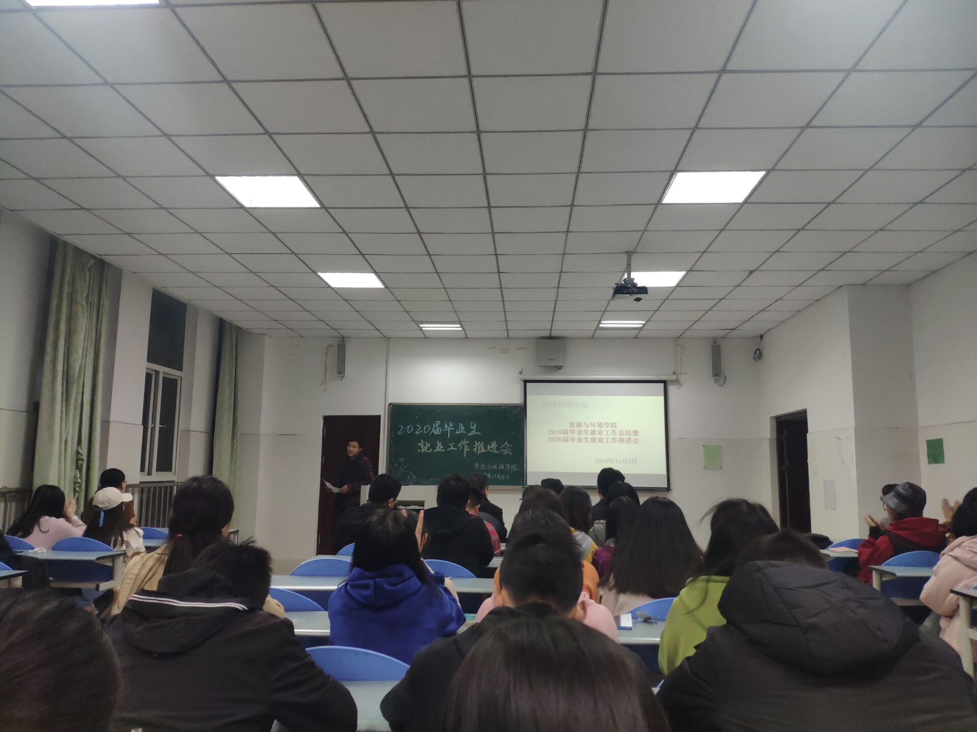 2019年11月4日晚上19:00,我院在实验楼A314举行“2019届毕业生就业工作总结暨2020届毕业生就业工作推进会”。资源与环境学院院长杨子松教授、学生管理办公室主任曾淼老师、地理教研室主任胡尧老师、崔娜娜、廖光萍、傅天华、杨飞琰等老师出席了会议。本次会议分为四项议程,由崔娜娜老师主持。