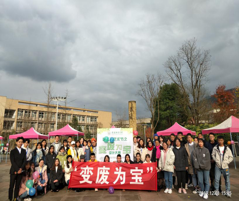 【本网讯】2019年12月1日下午两点整,资源与环境学院在枫叶广场举办了“不忘初心、牢记使命”主题实践活动“变废为宝”设计大赛决赛。出席本次大赛的评委分别是资源与环境学院党总支书记江先蓉,校团委周俊萍老师以及各二级学院学生会主席。变废为宝,顺应时代要求,点石成金,彰显创新精神。