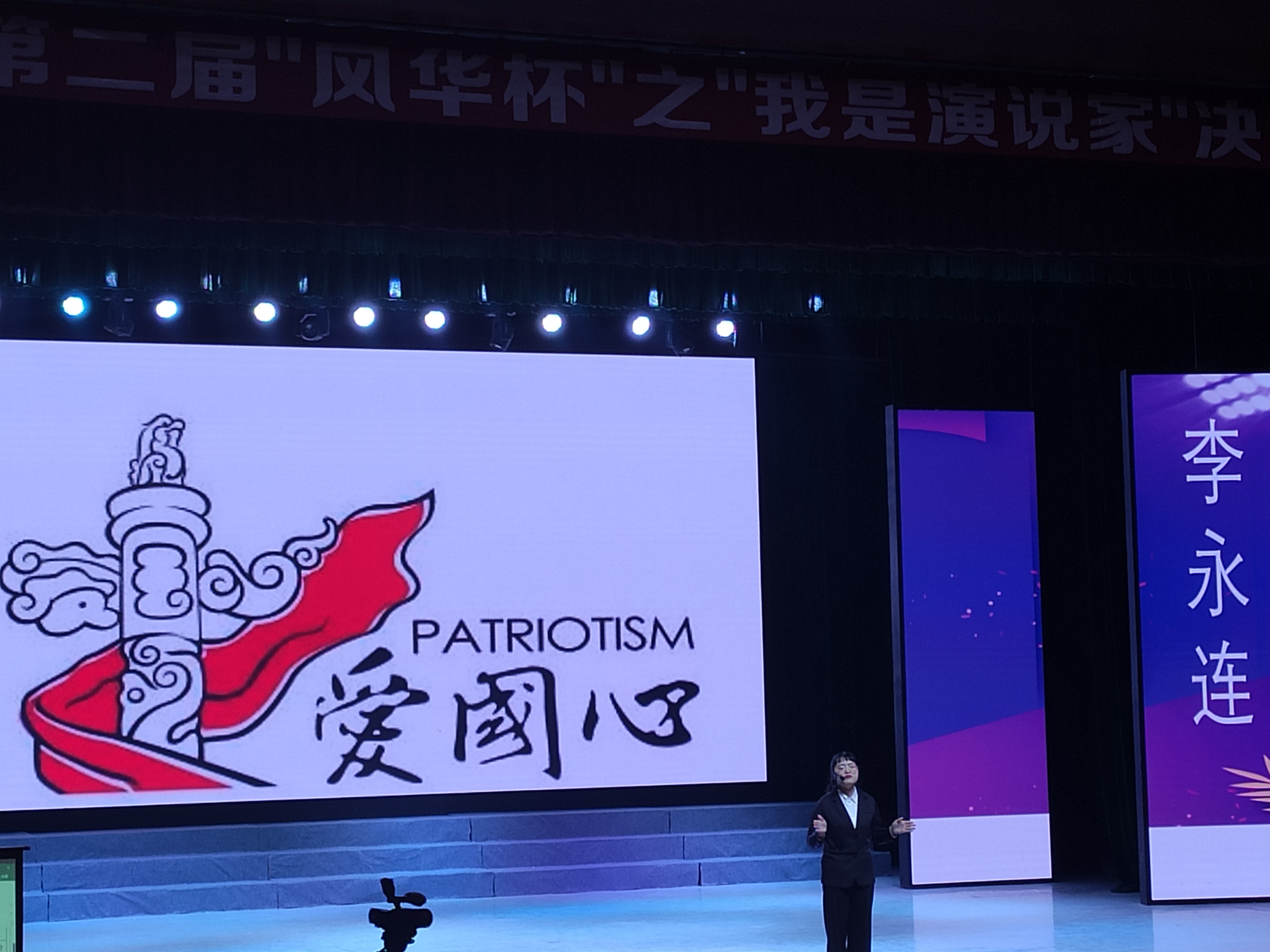 五号选手李永连借用钱伟长的例子将个人与国家相连,用平凡的小事将个人与国家相连,从伟人到平凡的人,谁都不能与国家脱离关系。李同学的声音感染着在座的每一位观众。最后以一个“苟利国家生死以,岂因祸福避趋之",了不起的中国魂,了不起的中国人!”结尾,用正能量完美收场。并且将自己的动作,语气,立意给观众留下了很深的印象。