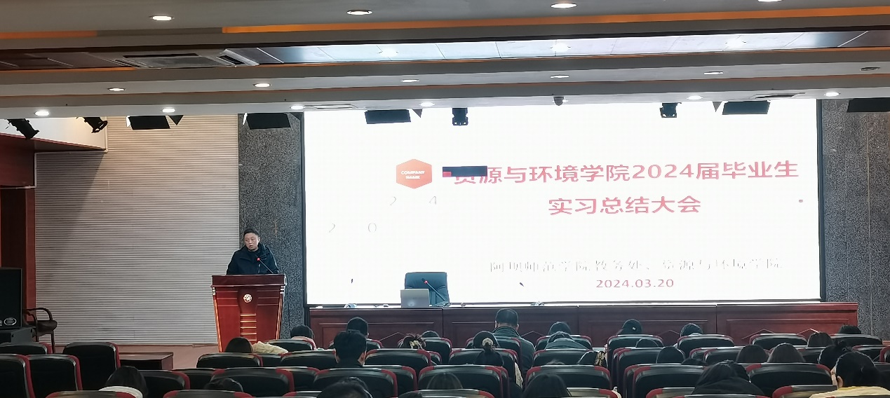 【本网讯】进一步提升实践教学质量,提高学生专业素质和实践能力,同时也为下一届毕业生的学习生活提供指导、借鉴,我院于2024年3月20日在学术报告厅举办资源与环境学院2024届毕业生实习总结分享大会。教务处副处长侯雨乐、资源与环境学院党委书记余列、副院长廖光萍、副院长冯琳、2020级、2021级班导师以及实习带队老师出席会议。会议由2023级生物科学代雅馨同学主持。
