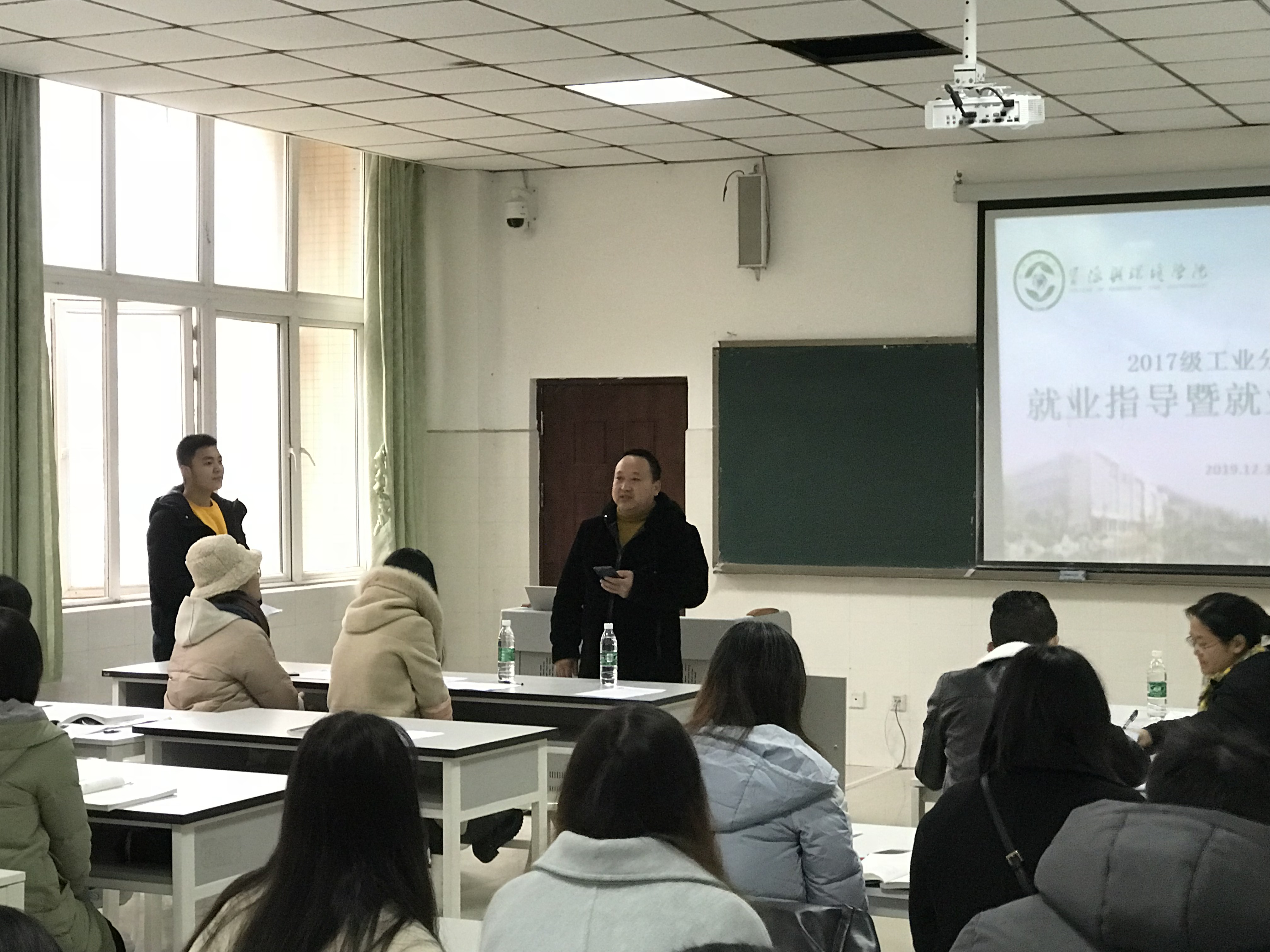 【本网讯】2019年12月31日10:00,我院2017级工业分析技术班在树人楼A312开展毕业生就业指导暨动员大会,我院党总支书记江先蓉、院长杨子松、化学教研室主任任朝琴、2017级工业分析技术班党员联系老师王仕英、以及2017级工业分析技术班班主任杨飞琰和2017级工业分析技术班全体同学参加此次大会,会议由班级团支书李富森主持。