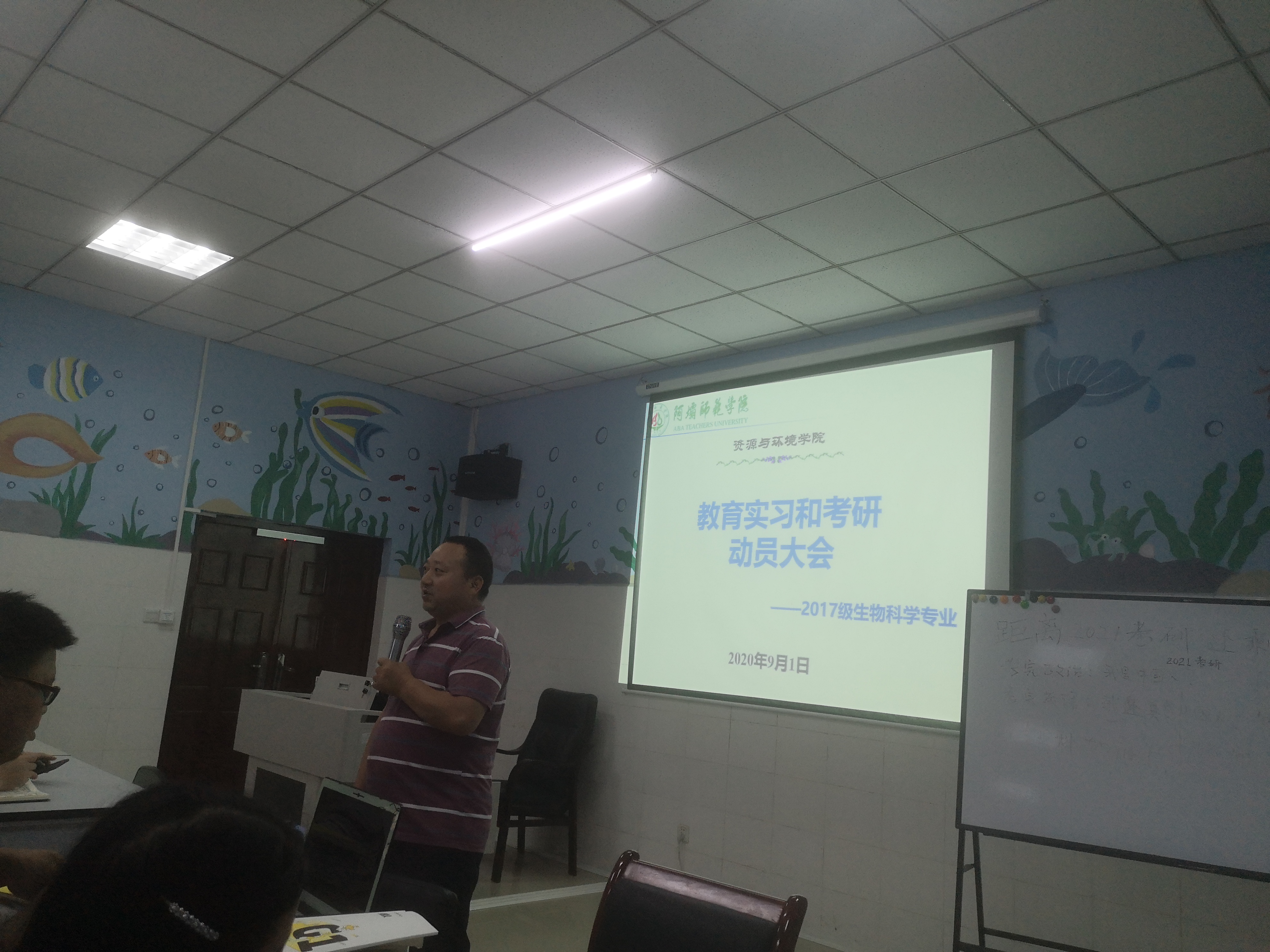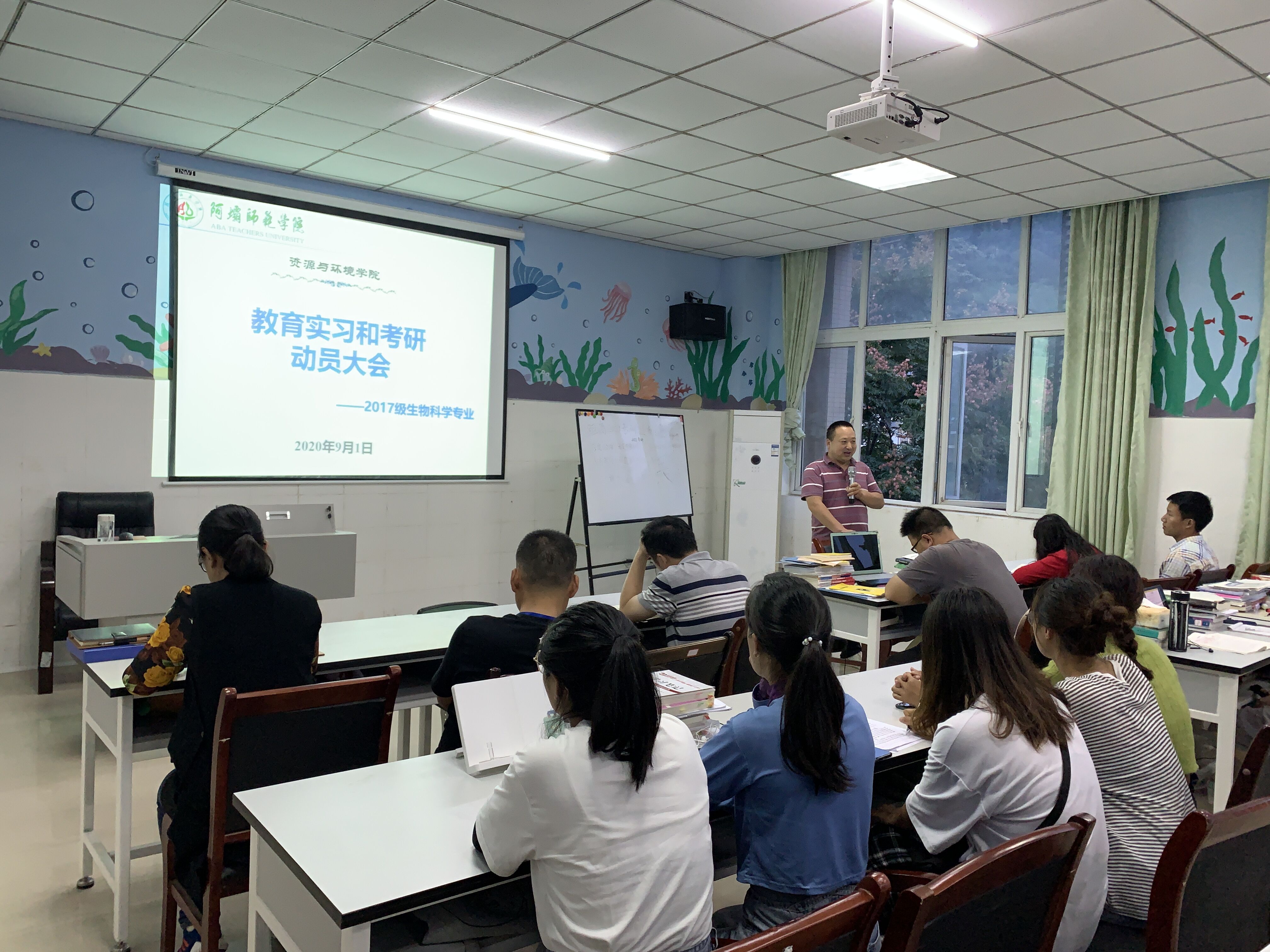 2020年9月1日晚7点,资源与环境学院在实验楼A207举行2017级考研动员大会。学院党总支副书记余列、副院长杨子松、生物教研室老师唐功、李懿、梁剑、王丽华、徐波、黄睿、刘文超出席了会议。