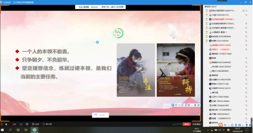 学院全体团员和非团员同学共837人通过视频、PPT学习材料等形式深入学习了“战‘疫’中的中国制度和中国精神”。各班团支部还运用新型冠状病毒肺炎疫情防控中的鲜活事例,采取视频、图片、数据等方式,从疫情来势汹汹、疫情防控中的中国力量、疫情大考后的青年担当等方面,生动讲述了集中力量办大事的中国制度优势,中国共产党以人民为中心、将人民群众生命安全和身体健康放在第一位的价值情怀,以及一方有难、八方支援的伟大中华民族精神,并引导同学们要做一个心怀大爱、只争朝夕、感恩奋进,有理想、有本领、有担当的新时代青年。同学们认真收看、并通过笔记和截图记录重要事项;最后同学们通过网络学习内容进行了讨论交流、并积极撰写心得体会。 19级地理科学1班雷超写到在渐暖的春日里,武汉按下重启键,向着希望出发;愿山河无恙,人间皆安,“两山”永不再重启!19级化学2班吴仕林写到祖国是我们另一个母亲,她让我们的成长更加安全,更加顺利,而我们在应该在接下时代火炬之前做好充分的准备,不负韶华。