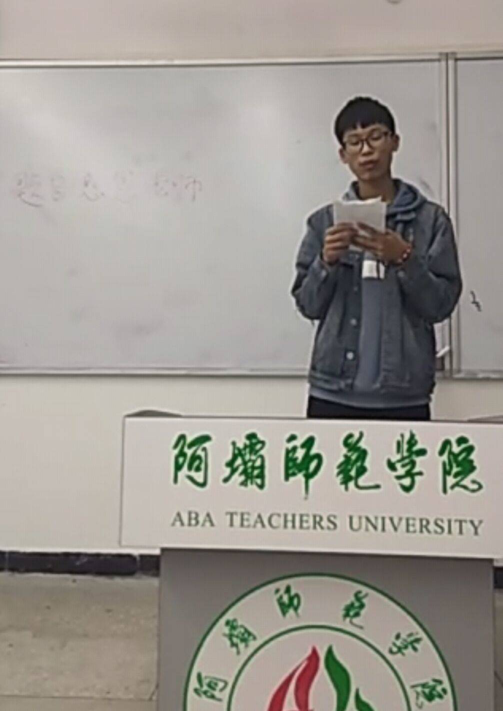【本网讯】为贯彻学院相关文件精神,弘扬习近平主席的新时代新青年的主题精神,与此同时为了丰富同学们的大学生活,加强同学与同学之间的交流,提高同学们的大学生活的生活乐趣,给同学们提供一个展示自己的机会和舞台。在2018级生物科学02班的班委的组织下,2018级生物科学02班第七周主题演讲活动顺利完成。阿坝师范学院2018级生物科学02班的全体同学参加了这次活动。