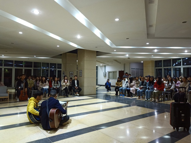 首先出场表演的是18级的李丰耘和黄梦婷,她们演唱的是90后的回忆——蔡健雅的“红色高跟鞋”,她们的和音像一条柔软的丝带,伸进黑洞里一点一点诱出深藏的记忆,刹那间,我们的心也随着那歌声一齐起伏,歌声似乎与我们的内心产生了共振,让我们体验到了一种从未有过的感情,此时大家都静了下来,安静的聆听她们的和鸣。演唱结束,现场响起了雷鸣般的掌声;过了几个演唱后,我们迎来了本次活动中唯一的舞蹈,由17级师姐们表演,因为是唯一的。所以现场大家的兴致都格外的高,一声一声的呐喊声冲破天际,接着的表演是本场很多同学最喜欢的表演,由19级的一位憨厚的师弟带来的吉他弹唱“虎口脱险”,听说同时弹唱,是很考验一个人的功底的,但他把自己扎实的功底表现得淋漓尽致,琴瑟和鸣。