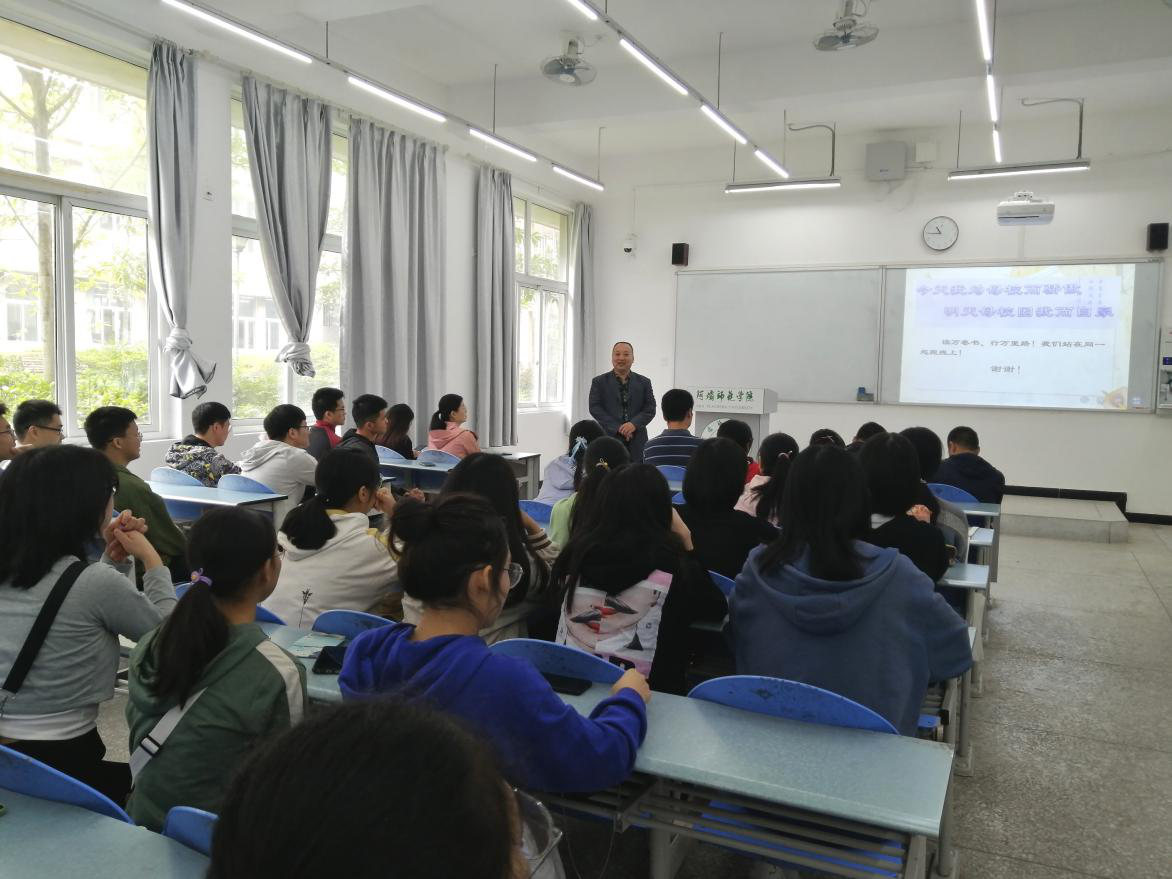 此次大会由2018级地理科学班刘昊朋主持,大会开始,刘昊朋上台一一介绍到场的领导和老师,并概述2020级地理科学班情况,在致欢迎辞后宣布专业介绍会暨见面会正式开始。接着胡尧老师进行专业介绍,胡老师从地理科学专业、相关考研学校、培养目标、专业课程设置、从事行业、专业沿革、专业老师介绍、教学科研设施、学风建设,人才培养、就业等多个方面进行介绍。胡老师详细、全面的介绍让在场同学的听得十分入迷,不时拿出手机拍照记录一些重要信息。专业介绍结束时同学们报以热烈的掌声感谢胡老师的介绍。随后,刘昊朋上台介绍地理专业取得的成就,从活动获得的奖项、学生会等校级部门的任职情况和科研项目开展三个方面介绍了2019级和2018级地理科学班同学在过去取得的成就,并让同学们自由提问。在提问环节,同学们纷纷提出了自己关心的问题,有的同学问社团是关于什么的,也有的同学关心野外实习是多久。最后杨院长上台致辞,介绍了我院师资力量、在线学习资源、科研获奖情况、学科学习要求等与同学们学习密切相关的内容。大会在同学们热烈的掌声中走向尾声,2020级地理科学班专业介绍暨师生见面会取得圆满成功。