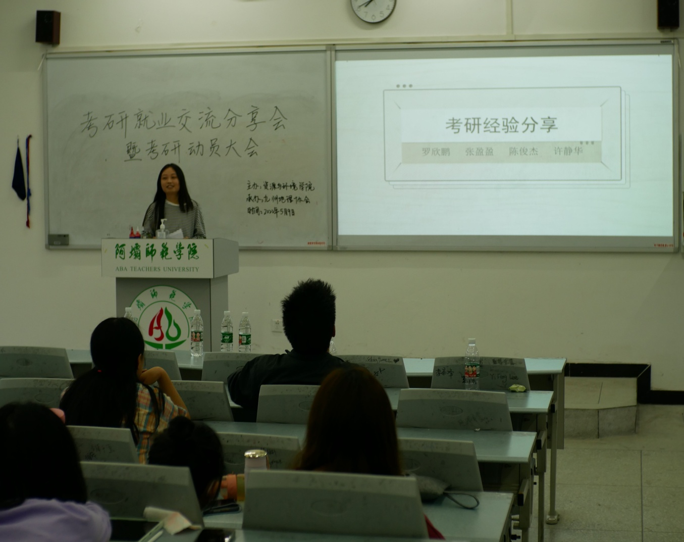 活动伊始,学院老师对本次就业考研交流活动致辞。随后由已就业毕业生代表向同学们分享他们在就业过程中的宝贵经验和心得技巧。2018级化学张登明同学从自身就业经历出发,围绕如何面试、调整心态等方面谈了自己的亲身体验和感受。2018级地理科学专业段玚同学分享了她自己参加校招、选调的考试技巧。就业经验分享后,邀请了考研成功的毕业生代表为同学们分享考研经验,向同学们提供她们在努力备考过程中的复习、笔试面试技巧等。2018级化学金雪琴和陈诗罗同学以自身的考研经历,围绕如何写毕业论文、如何选择报考学校进行了深入交流。2018级生物科学专业刘舒婷同学从考研准备讲起,在确定考研专业后要从多个方面多角度了解学校和专业,根据自身规划各科复习时间,制定详细的周计划、月计划。刷题时尽量找目标学校的真题,要及时总结反思。同时,要注意在学习之余进行运动,有健康的身体才有好的学习。在师兄师姐的精彩分享下,活动接近尾声,同学们纷纷针对所感兴趣的版块向师兄师姐提出自己疑惑,从中寻找解决自己在备考等问题上的解决方法。在座同学们从大四学姐学长们的经验中吸取经验,为以后发展奠定基础。最后,老师发表对此次分享活动的整体感知与心得,并对就业考研交流分享活动进行最终的总结,以及最终祝愿即将毕业的大四同学前程似锦,对其他同学给予勉励。