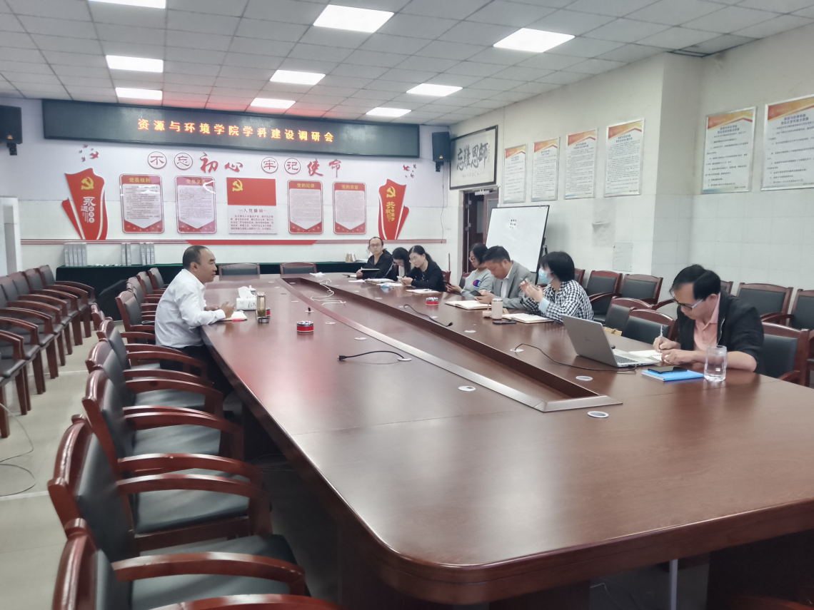 【本网讯】9月14日9:00,齐泽民副校长深入资源与环境学院进行学科建设指导调研。资源与环境学院党委副书记余列、副院长王丽华、教学科研办公室主任刘蓉、地理科学专业带头人、副院长侯雨乐、生物科学专业带头人梁剑、化学专业带头人刘林参加此次调研会。