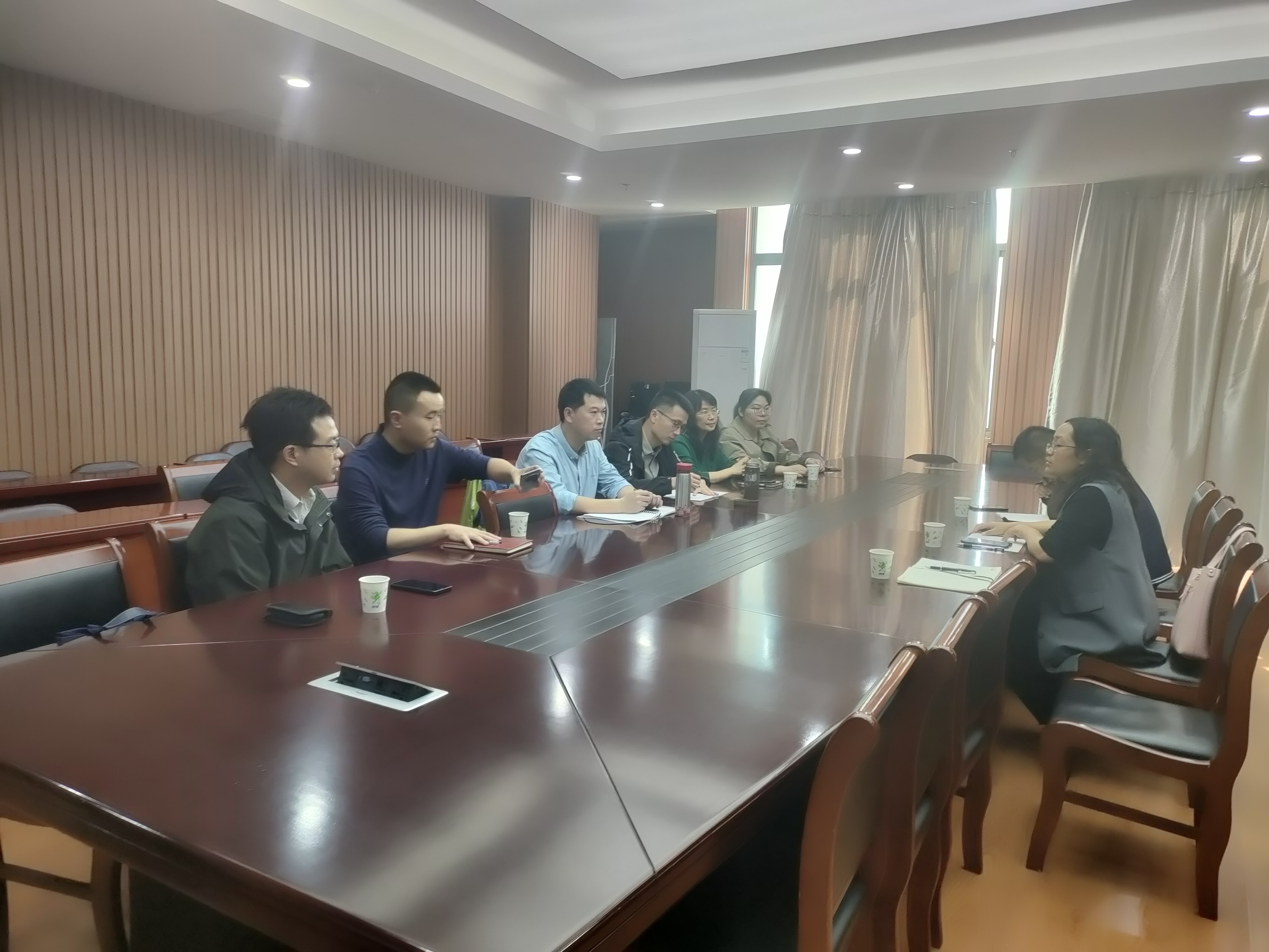 任朝琴一行与化学与材料科学学院院长方臻以及化学系主任陈郑等人进行了座谈,就师范认证、人才培养方案、一流课程建设、实验室安全以及教师、学生竞赛等问题进行了交流探讨。座谈会上,方臻院长详细介绍了学院办学整体情况、实践教学体系的构建及创新人才的培养,并对我方与会代表提出的问题进行了现场解答。