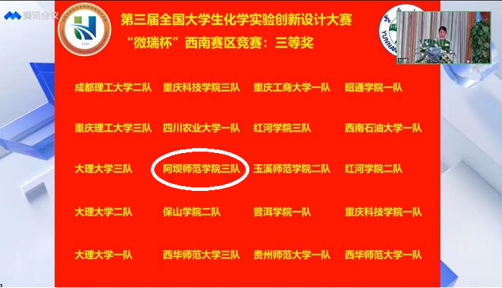 【本网讯】2022年7月17日-19日,由教育部高等院校化学类专业教学指导委员会主办,高等院校国家级实验教学示范中心联席会协办,云南大学承办的“2022第三届全国大学生化学实验创新设计大赛微瑞杯”西南赛区竞赛复赛采取线上答辩的形式在云南大学举行。
