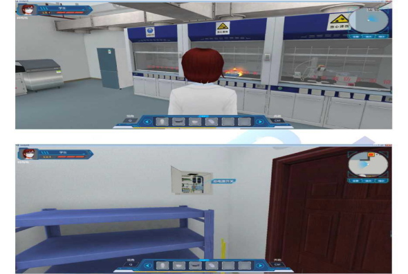 本模块模拟了实验室火灾发生时的状况及处理办法,